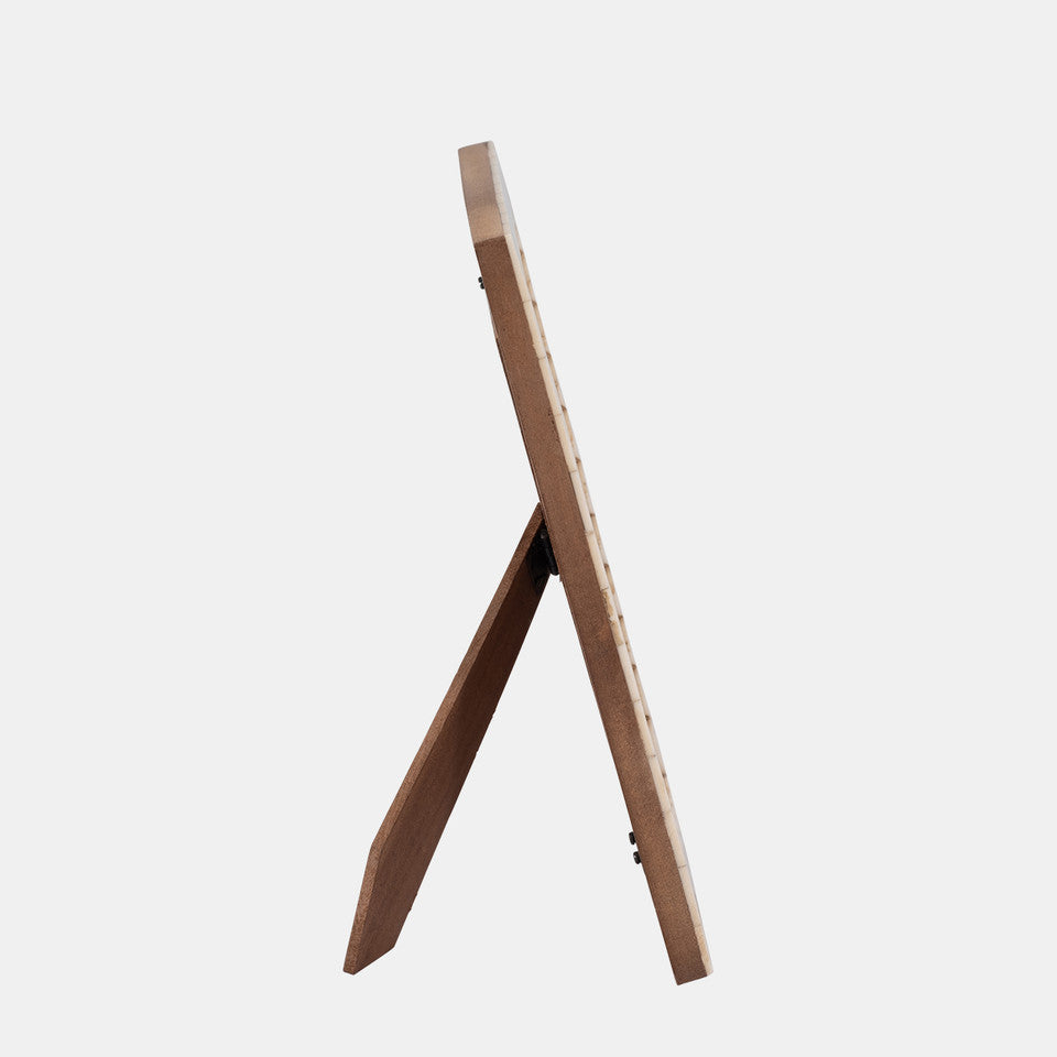 Put your memories in a frame worth showing off with our Scalloped Photo Frame. Made of ivory resin, its unique scalloped design adds a touch of elegance to your pictures. Perfect for displaying your favorite moments.