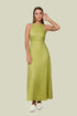 The Penelope Dress is a study in soft structure—crafted from 100% linen and lined with eco-conscious ECOVERO™ viscose for a light, breathable feel. A high neckline and delicate back button keep things refined, while the bow tie detail adds a quiet wink.