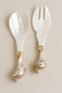 Elevate your entertaining with our handcrafted Mother of Pearl Serving Set, featuring a spoon and fork carved from natural shell. This luminous duo is perfect for serving salads, pasta, grains, or shared plates. With their iridescent finish and sculptural coastal design, these unique utensils add a refined touch to everyday meals and special occasions alike.
