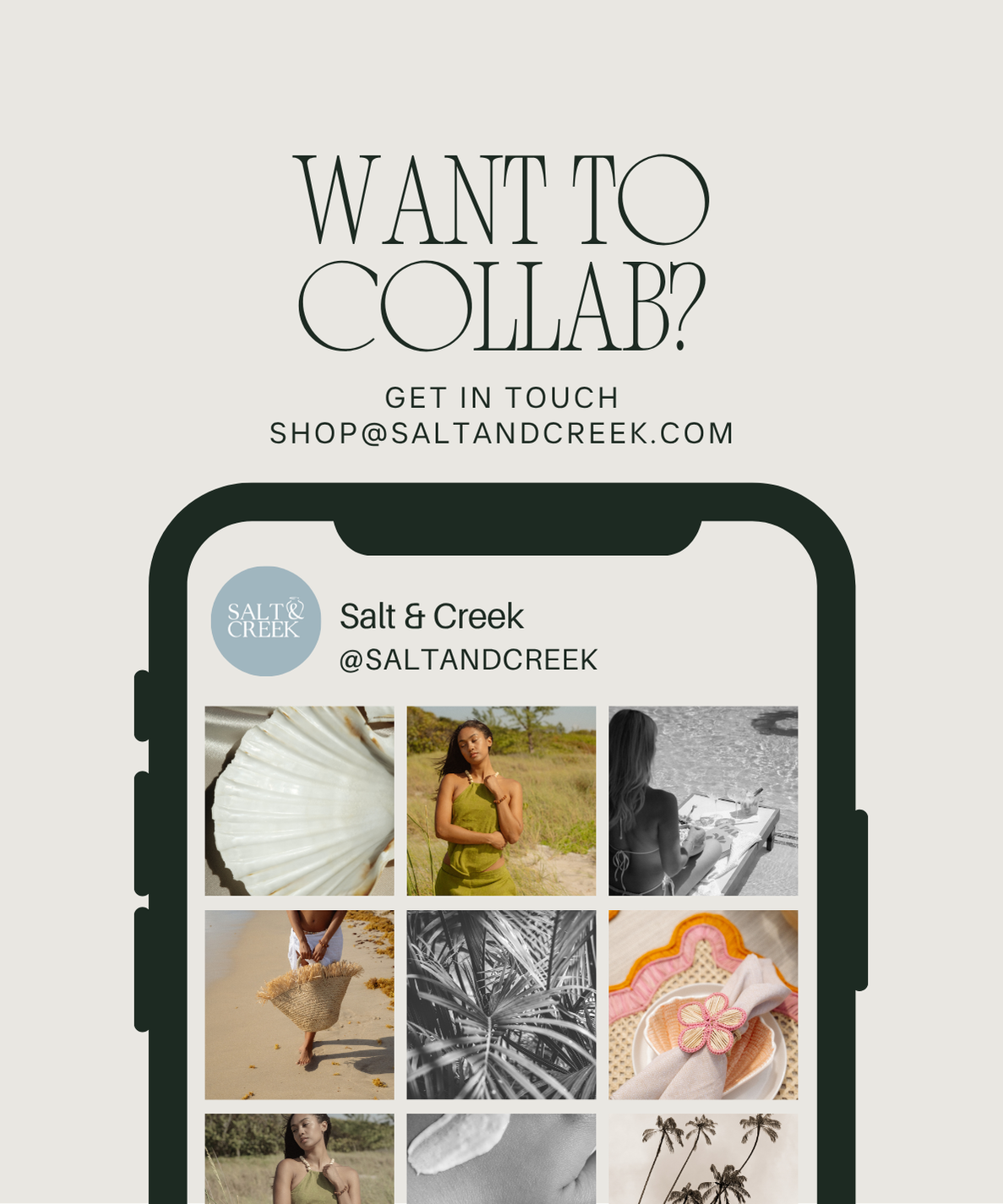 Brands, let’s talk. From co-branded products to curated gifting, we love linking arms with like-minded labels who share our resort-state-of-mind ethos. If you’ve got an idea that feels chic, fresh, and a little unexpected—we’re all ears.