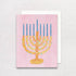 Celebrate the season with a playful nod to both holidays. This whimsical greeting card features a hand-painted menorah wrapped in colorful Christmas lights, glowing blue candles, and a cheerful pink background — the perfect pick for anyone who loves a good Chrismukkah moment. Bright, joyful, and full of personality, it’s a fun way to send festive wishes across traditions.