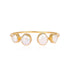 This open bangle is crowned with four glowing mother-of-pearl cabochons, two on each end, set in textured gold-plated brass. Its sculptural silhouette catches the eye from every angle while the open design ensures a comfortable fit. Whether worn solo or stacked with pearl strands and beaded cuffs, it’s a piece that carries both refinement and coastal ease.