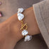 Inspired by the natural shimmer of the sea. The Prisma Bracelet features sculptural, pearl-like shells linked with polished 18K gold-plated hardware, finished with a sleek toggle clasp for effortless wear.